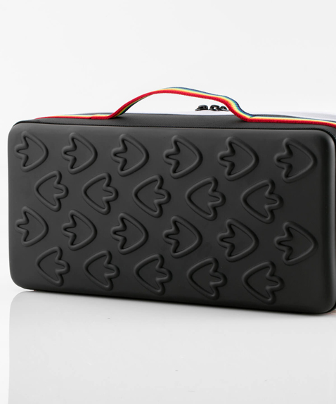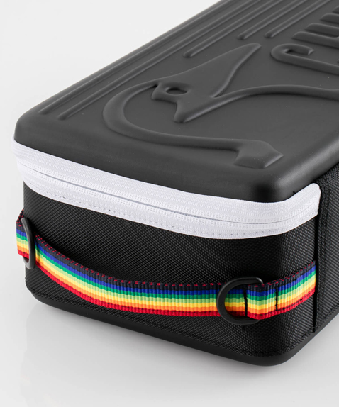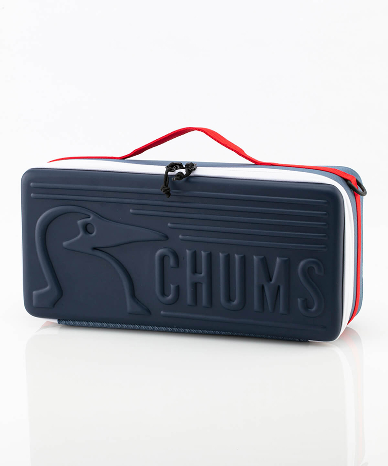 衝撃に強く、耐久性の高いEVA樹脂を使用。 側面部分はクッション性もあり、衝撃から中身を守る心強いアイテム。蓋裏にはメッシュポケット、中にはPVCライナーと可動式の間仕切り(2枚)付き。間仕切りはベルクロで側面に取り付けできます。蓋にはブービーバード、底面には足跡をデザインしたチャムスらしいかわいらしいデザイン。スリム型はペグ・ロープなどテント周りの小物の収納に最適。カメラ・ビデオの収納にも◎。